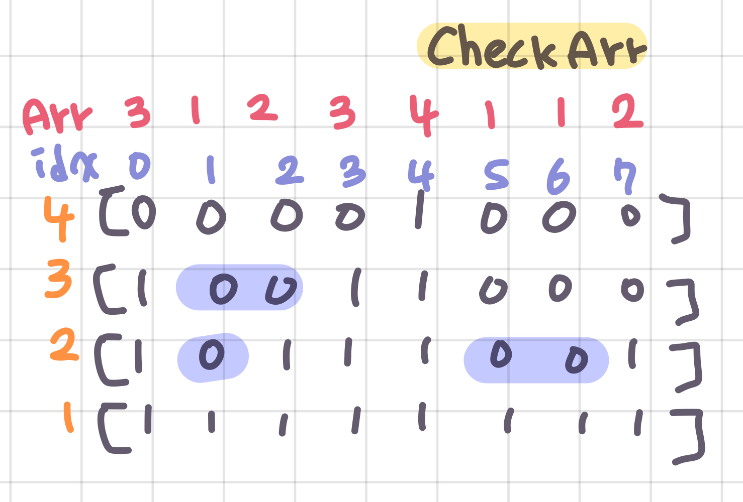 - 먼저, 입력값인 H와 W, Arr를 이용하여 다음과 같이 새로운 배열을 만들었다. (checkArr)