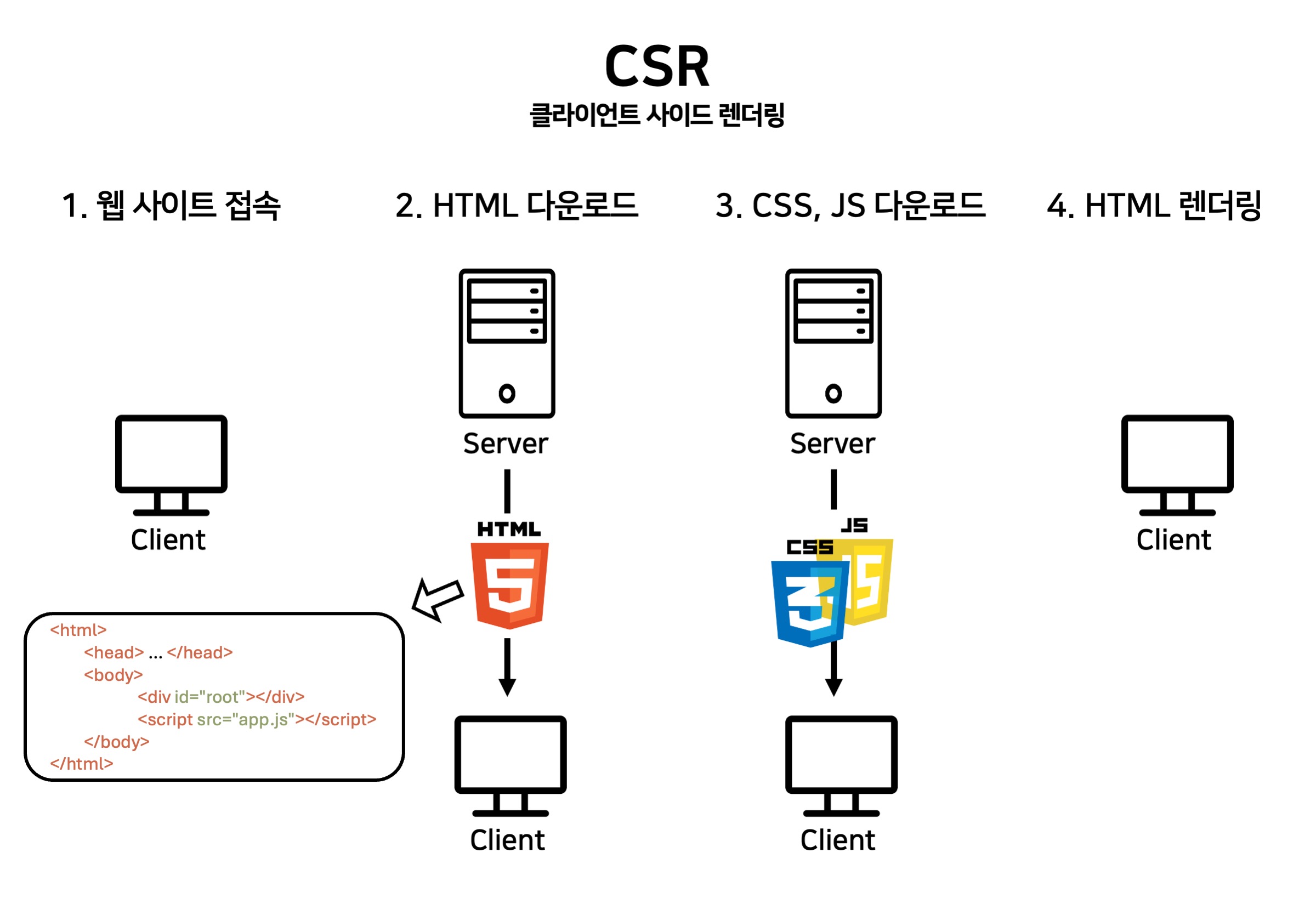 클라이언트 단에서 렌더링을 수행하면 CSR, 서버에서 렌더링을 수행하면 SSR을 의미하는 데