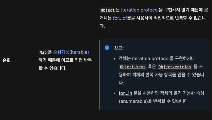MDN 문서 : 자바스크립트의 Map 객체에서 본 Map과 Obejct의 차이