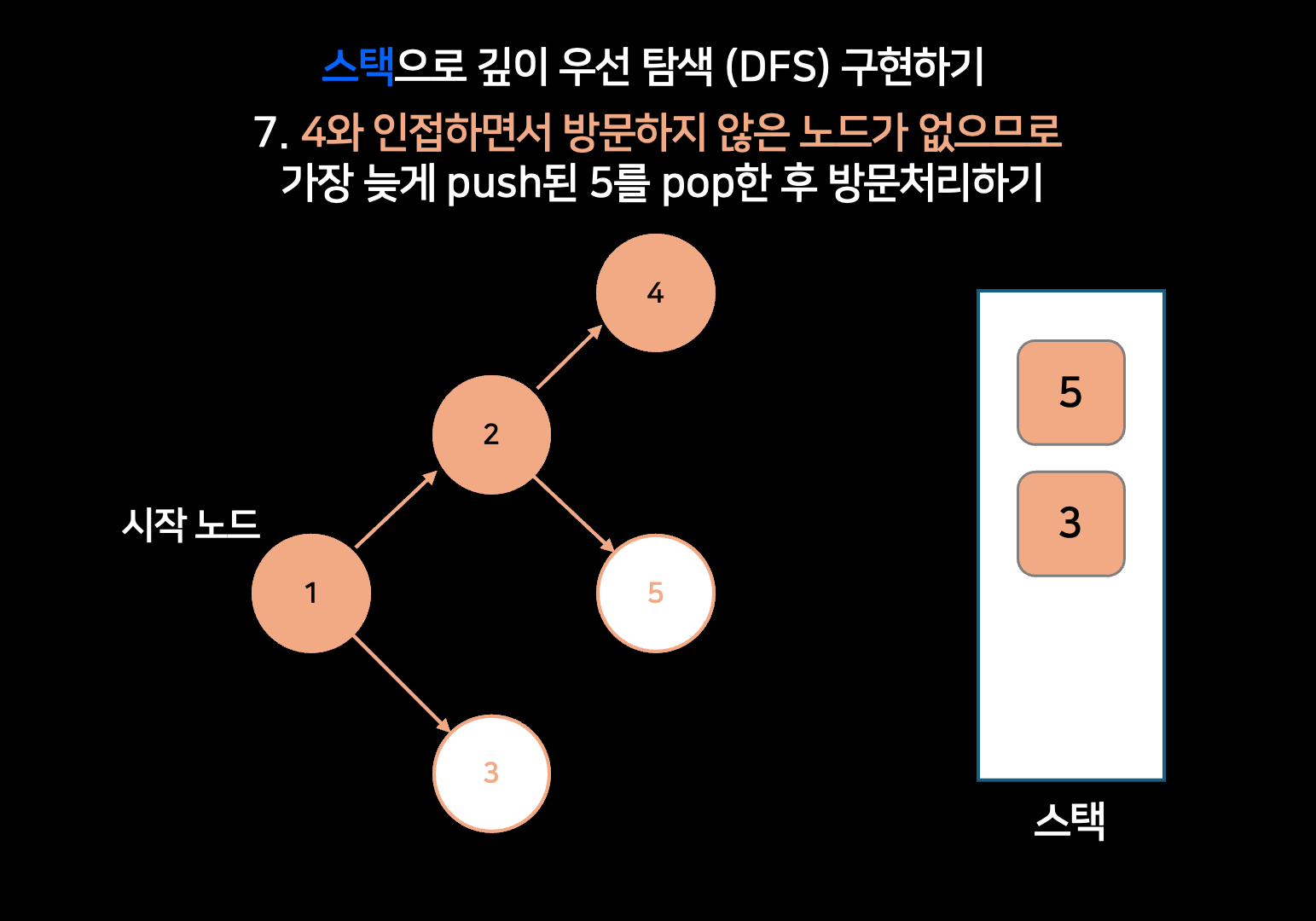 깊이 탐색한 다음 되돌아오는 깊이 우선 탐색 (DFS)