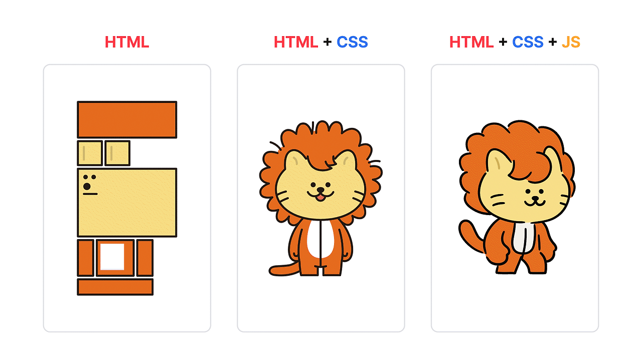 웹 개발을 위해 우리는 총 세 가지의 언어를 배웠다. 바로 HTML과 CSS, JS이다. 이 언어들은 다음과 같은 역할들을 각자 담당하고 있다.