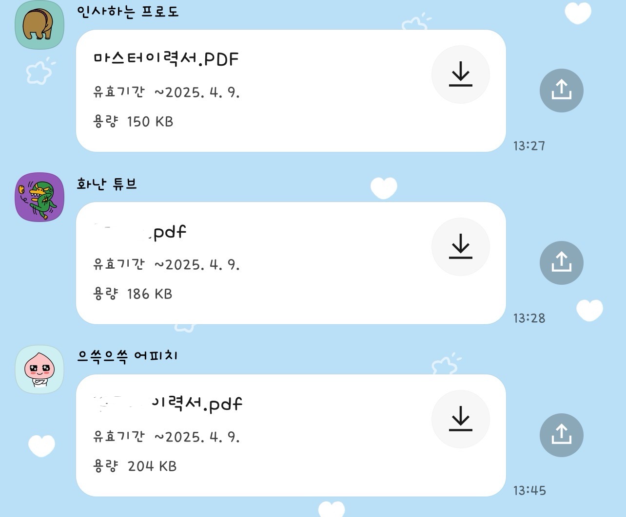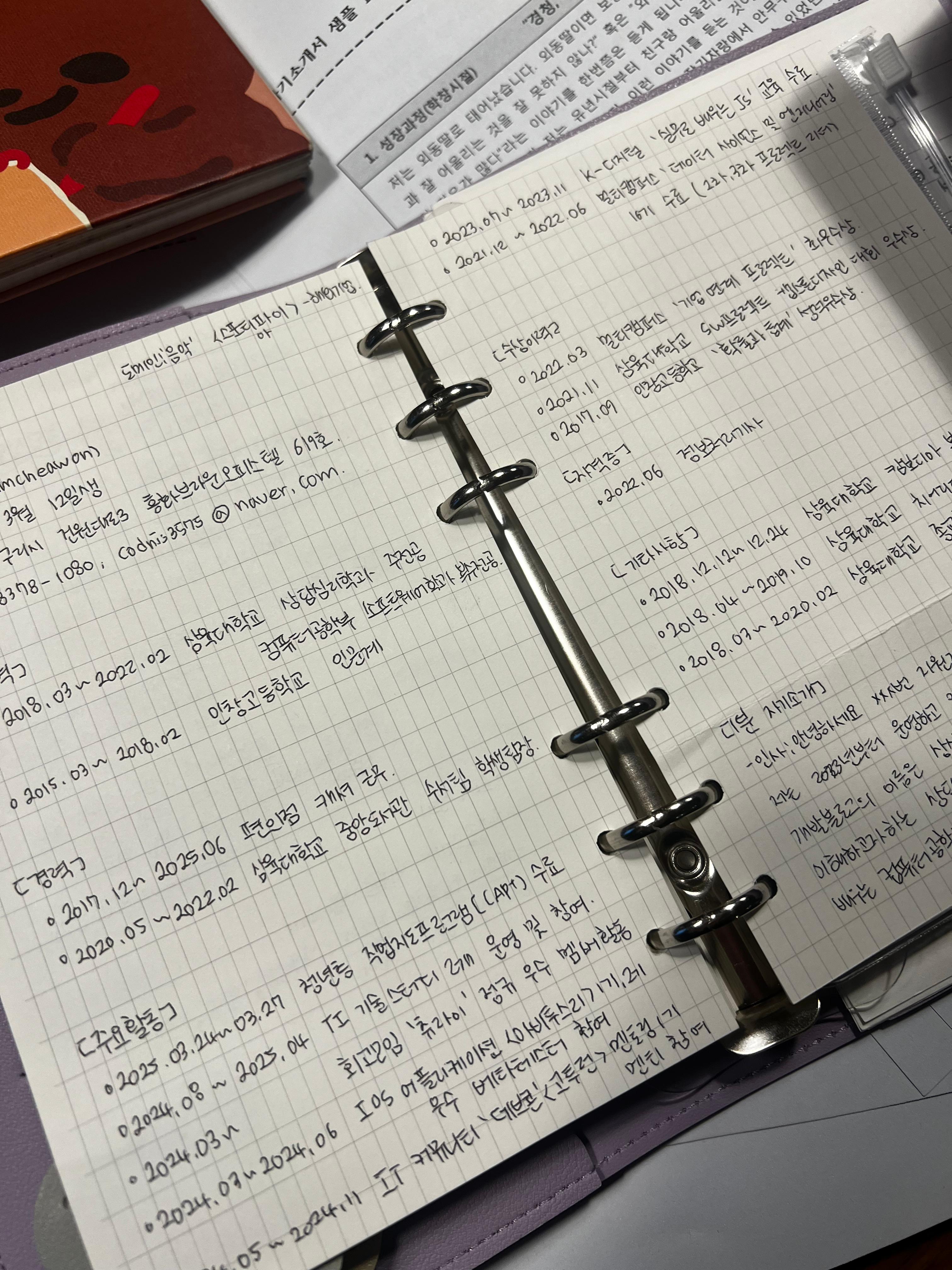 - 친화력 : 사람들과 친해지는 걸 좋아해서 좋게 봐주신 분들에게서 새로운 기회를 얻곤 함