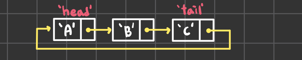 3. 원형 연결리스트 : 마지막 Node(tail)의 링크가 첫 Node(head)를 가리킨다.