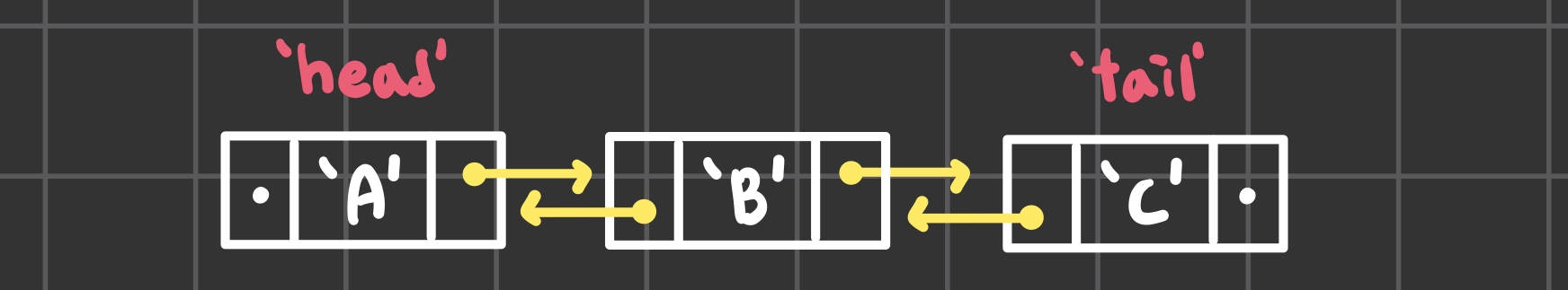 2. 이중 연결리스트: Node 1개에링크 2개가 있다. (이전 Node 링크1개,이후 Node 링크1개)